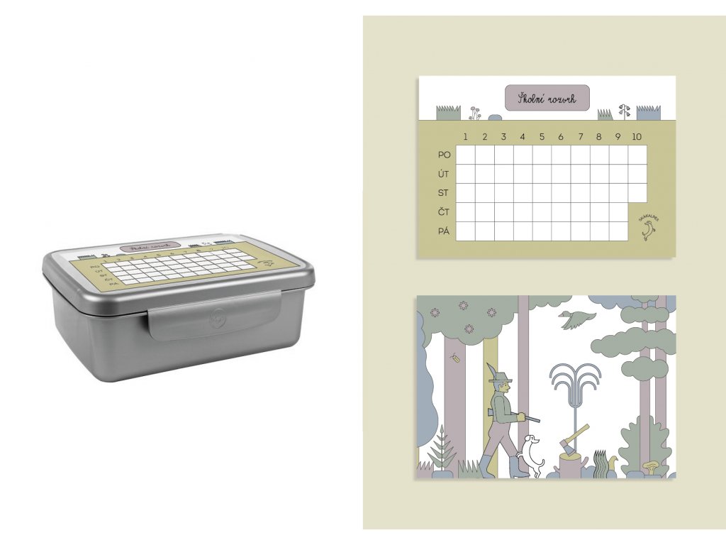 - Jeho víko obsah neprodyšně uzavře, takže nic se nevysype ani nevyteče. Materiál je stejný jako u Zdravé láhve, tedy také zdravotně nezávadný. Jako bonus má navíc box vyjímatelný list s obrázkem na jedné a s rozvrhem na druhé straně, takže podle chuti a nálady lze zvolit, jaký motiv bude navrch.